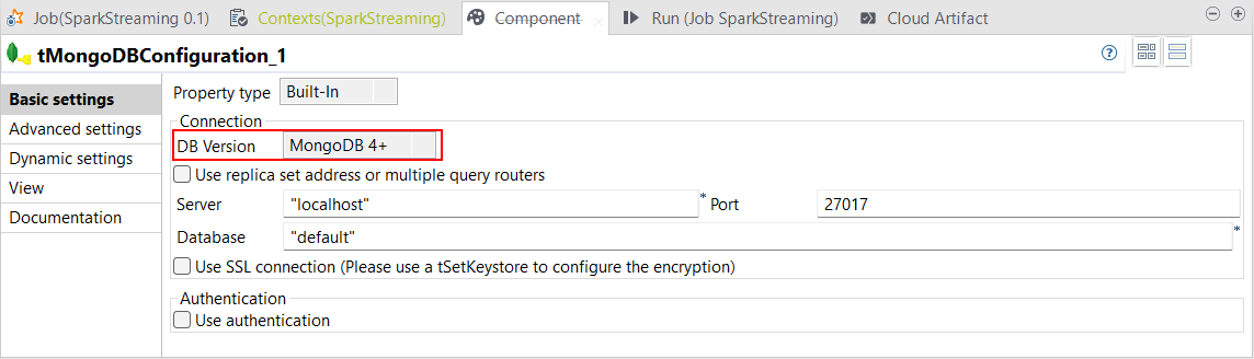 | Support de la chaîne de caractères de connexion d'URI dans le tMongoDBConfiguration | Vous pouvez à présent définir une connexion à MongoDB à l'aide d'un URI (Uniform Resource Identifier) dans vos Jobs Spark Batch et Spark Streaming. Vous pouvez la configurer à l'aide du paramètre Use connection string (Utiliser une chaîne de caractères de connexion) disponible dans le tMongoDBConfiguration. Cela vous permet d'ajouter des paramètres de connexion comme le préfixe mongodb+srv utilisé pour MongoDB Atlas dans les Jobs Spark Batch.