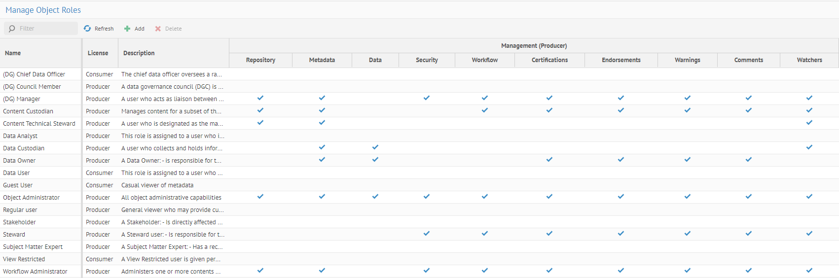 | Nouveau contrôle des accès basé sur les rôles avec rôles globaux et rôles d'objets | Talend Data Catalog fournit à présent un contrôle des accès basé sur les rôles.
