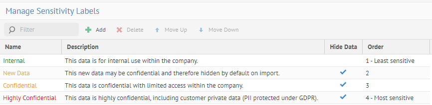 Vous pouvez gérer et personnaliser ces libellés depuis la page Manage Sensitivity Labels (Gérer les libellés de sensibilité).