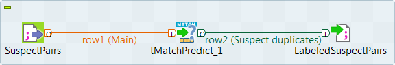- Reliez le composant tMatchPredict au tFileOutputDelimited à l'aide d'un lien Suspect duplicates.