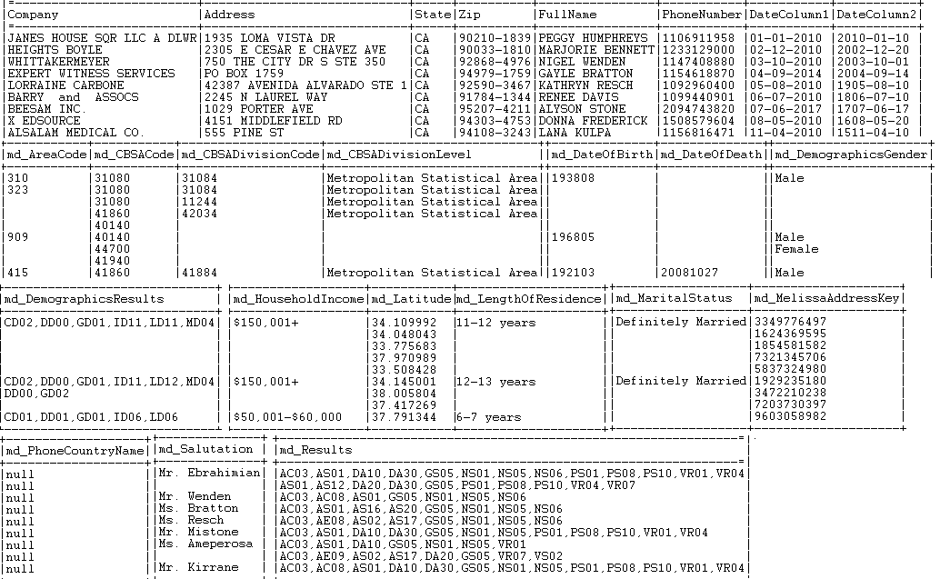 La base de données est enrichie et les résultats sont affichés dans la console. Voici un exemple de colonnes de sortie enrichies.