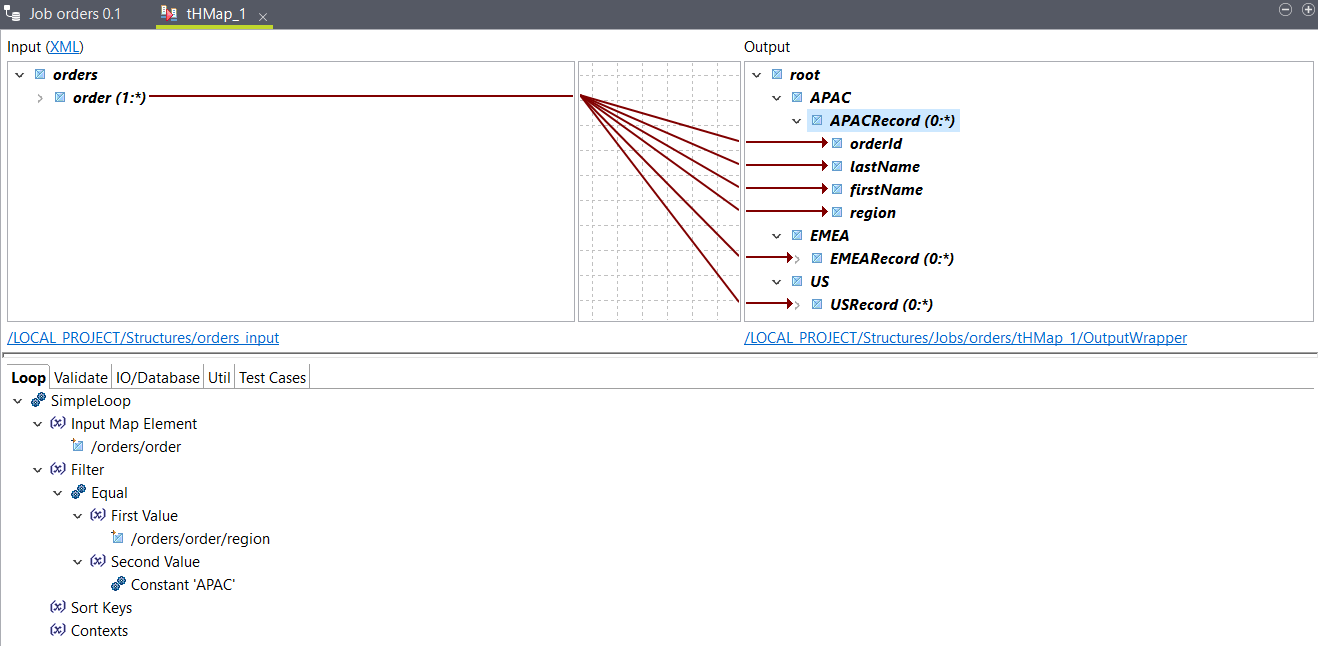 Configurez votre map pour filtrer les enregistrements d'un fichier d'entrée et écrire le résultat dans trois sorties différentes.