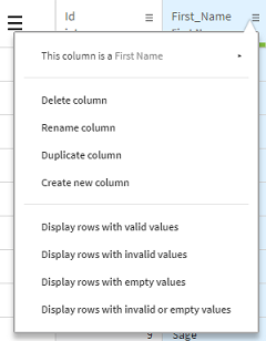 | Create new column (Créer une nouvelle colonne) | Crée une nouvelle colonne, pour ajouter de nouvelles données à votre jeu de données si besoin. Spécifiez la manière dont vous voulez remplir la colonne, soit en copiant une colonne existante, soit en générant une séquence d’entiers, ou bien en la laissant vide. |
