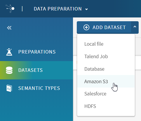 Dans cet exemple, vous allez préparer des données clients stockées dans Amazon S3. Vous allez saisir vos informations de connexion à Amazon S3, directement dans l'interface de Talend Data Preparation et créer un jeu de données à partir de ces données.