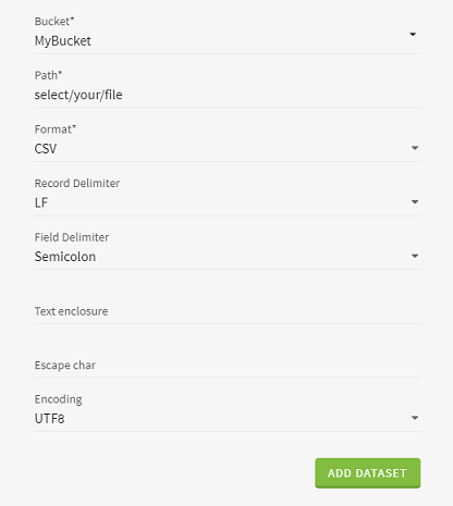 Ajout d'un jeu de données depuis Amazon S3