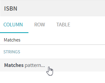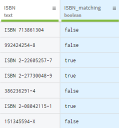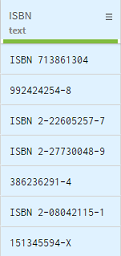 Ce scénario prend l'exemple d'une personne travaillant sur un jeu de données listant des informations au sujet de livres, y compris leur numéro ISBN. Avec Talend Data Preparation, il est possible de vérifier si les numéros ISBN sont valides et suivent le bon modèle. Avec la fonction Matches pattern (Correspond au modèle), vous pouvez comparer vos données à une expression de votre choix.