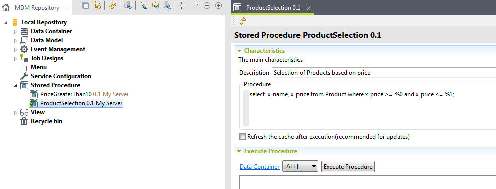 Vous avez créé une procédure stockée nommée ProductSelection et déployé cette procédure stockée sur Talend MDM Server.