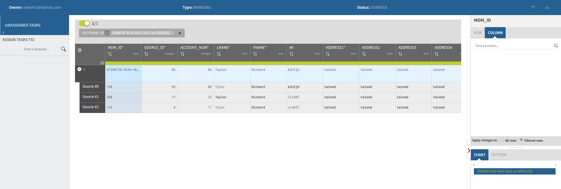À la fin du processus de rapprochement intégré, une option Open Task est disponible pour les enregistrements de données associés à la tâche de fusion. Cette option permet aux utilisateurs et utilisatrices dédiés d'accéder à Talend Data Stewardship et de visualiser les détails de la tâche de fusion.