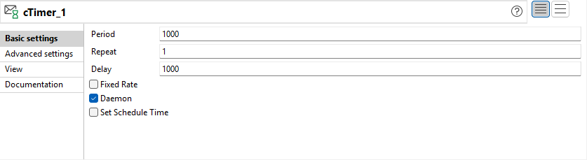 Double-cliquez sur le premier composant cTimer pour afficher sa vue Basic settings dans l'onglet Component.