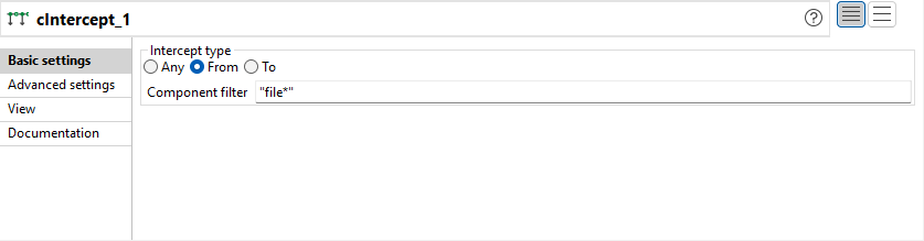 Sélectionnez le type d'interception From et saisissez "file*" dans le champ Component filter pour intercepter les messages du composant dont le nom correspond au modèle file*.