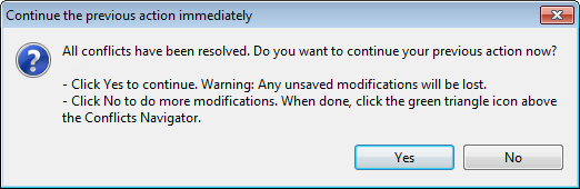 Dans un environnement collaboratif où plusieurs utilisateurs et utilisatrices travaillent simultanément sur le même projet, vous pouvez rencontrer des conflits lorsque vous effectuez un Push, un Update, ou un Merge sur les branches. Dans ce cas, vous verrez une boîte de dialogue s'afficher pour vous demander si vous souhaitez résoudre ces conflits.