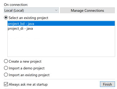 Pour créer un projet local après le premier démarrage du Studio Talend, procédez comme suit :
