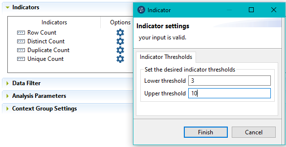 6. Dans la vue Indicators, cliquez sur Options afin d'ouvrir une boîte de dialogue dans laquelle vous pouvez définir le seuil pour chaque indicateur.
