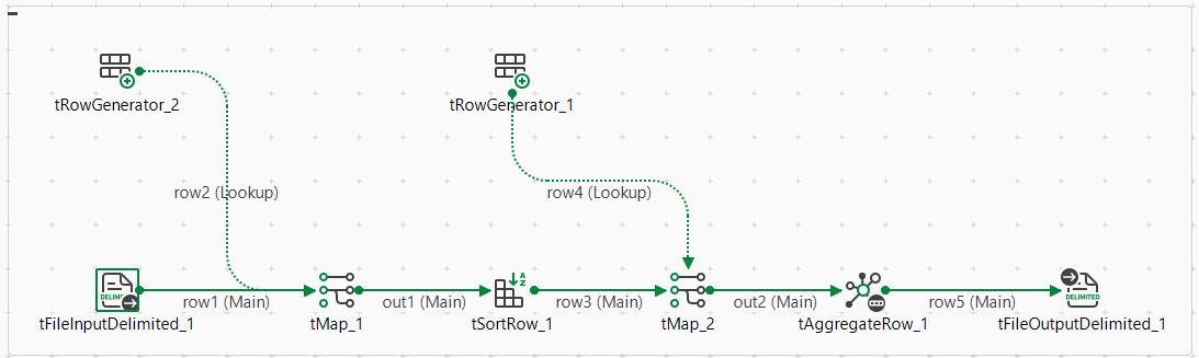 Dans ce Job, le tRowGenerator est utilisé pour générer les données d'entrée, le tMap et le tSortRow sont utilisés pour traiter les données et les autres composants pour écrire les données en sortie dans différents formats.
