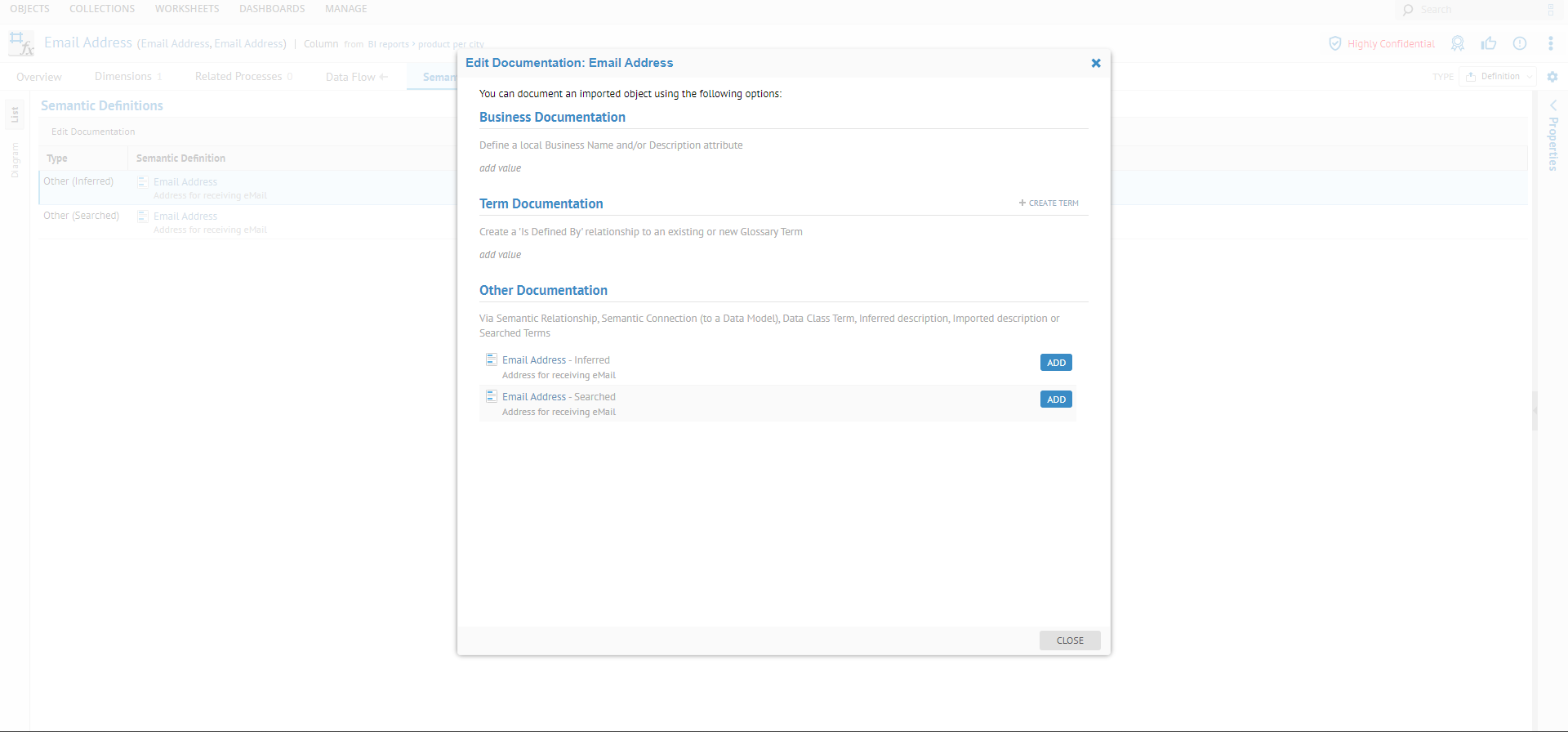 Exécutez une définition sémantique pour le champ de rapport Email Address.