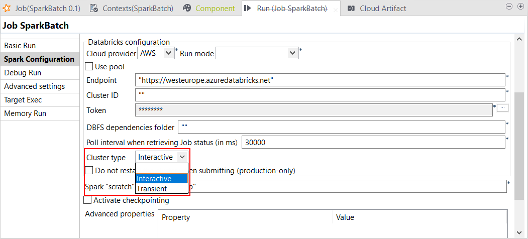 | SparkジョブのDatabricksでジョブクラスターを汎用クラスターに切り替えられるコンテキストグループをサポート | コンテキストグループを使い、Databricksでジョブクラスターを汎用クラスターに切り替えられるようになりました。Databricksクラスターへの接続を設定する際に、Sparkジョブの実行時に使用する特定のコンテキストグループを追加できるようになりました。Sparkジョブの[Spark configuration] (Spark設定)ビューと[Hadoop Cluster Connection] (Hadoopクラスター接続)メタデータウィザードのいずれでも設定できますが、[Hadoop Cluster Connection] (Hadoopクラスター接続)メタデータウィザードで設定することをお勧めします。