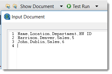 14. [Show Document] (ドキュメントを表示) > [Import Document from File] (ファイルからドキュメントをインポート)の順に選択し、編集したばかりのhardware_request.csvファイルを選択します。