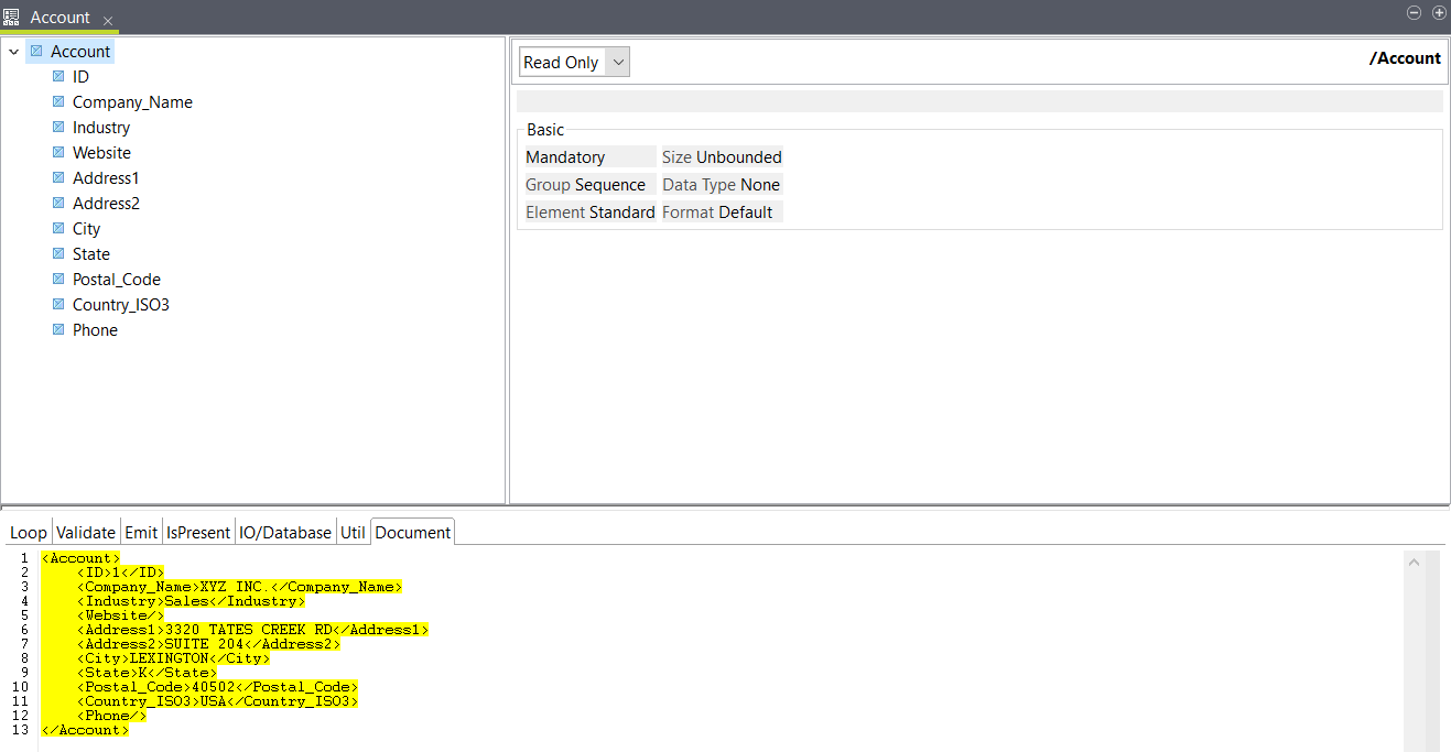 XMLサンプルファイルをベースにストラクチャーを作成します。詳細は、ストラクチャーを使って作業をご覧ください。