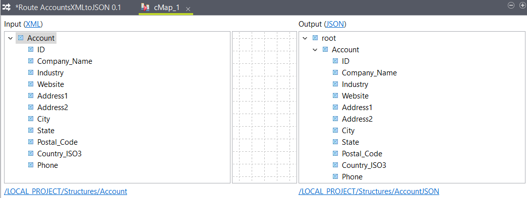 既に作成されている入力ストラクチャーと出力ストラクチャーを使ってマップが生成されます。これでエレメントをマッピングできるようになります。