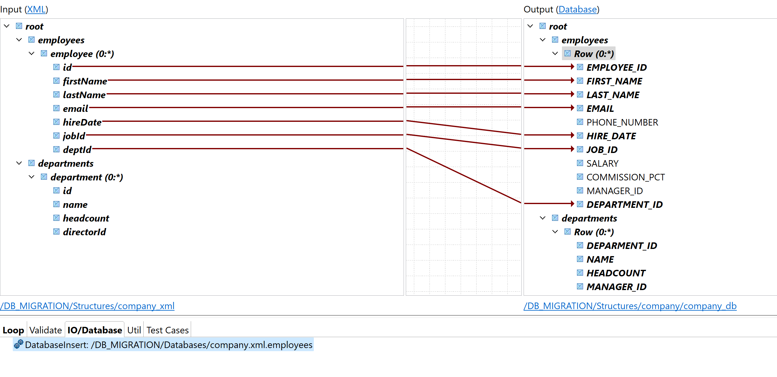 非推奨のDatabaseInsertファンクションをtDBOutputコンポーネントに置き換えるため、ジョブおよび複数出力のマップをアップデートします。