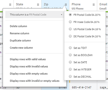 Talend Dictionary Serviceを使用して、5桁の形式に一致する他のセマンティックタイプを削除し、US Postal Codeのみを残します。変更は即座にTalend Data Preparationに移植され、今後、郵便番号はUS Postal Codeセマンティックタイプに対してだけ検証されます。