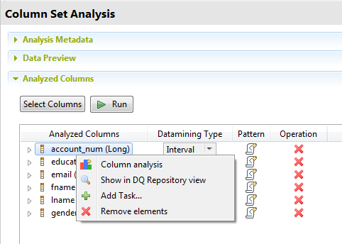[Analyzed Columns] (分析済みカラム)ビューで、カラム分析を作成したいカラムを右クリックします。