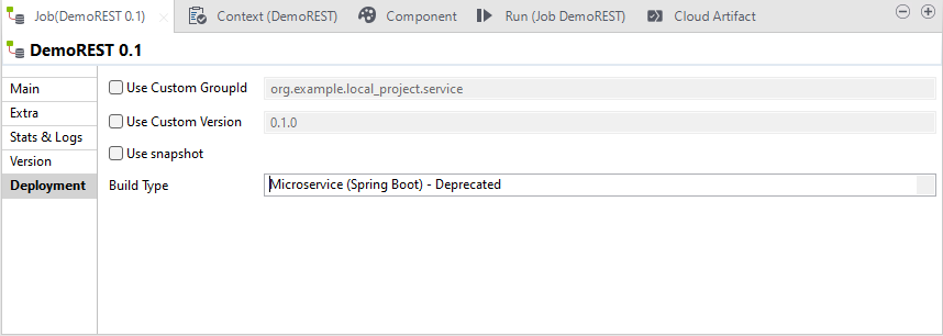 8.0 R2024-02以降、このビルドタイプは非推奨となっており、R2024-09に削除されます。新しいマイクロサービスビルドタイプでデータサービスジョブをビルドする場合は、次の操作が必要です: