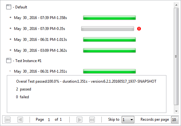 実行履歴を含むテストインスタンスの実行結果、または特定の実行の詳細を表示するには、対応する