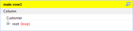 この図は、入力フローCustomerの例を示します。デフォルトでroot (ルート)とタグ付けされ生成されたXMLルートに基づいて、目的のXMLツリーストラクチャーを開発できます。