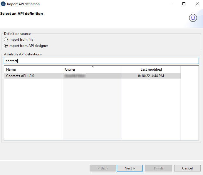 API定義が作成されるフォルダーから選択するリスト。 |