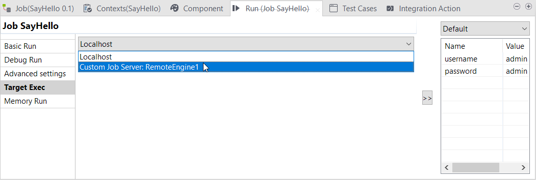 - Talend Management ConsoleのRemote Engineでリモート実行機能が有効になっていること。詳細は、ジョブデバッギング用にTalend Studioでリモート実行を有効化をご覧ください。