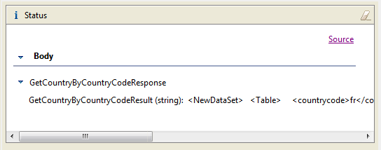 Webサービスの要求や応答をデバッグする必要がある場合は、[Status] (ステータス)エリアの[Source] (ソース)リンクを使用できます。