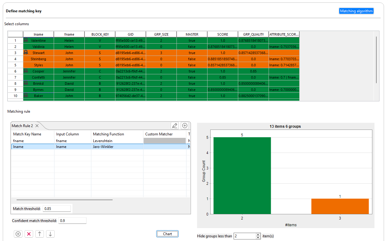 この例では2つのマッチングキーが定義されており、ファーストネームとラストネームにそれぞれ