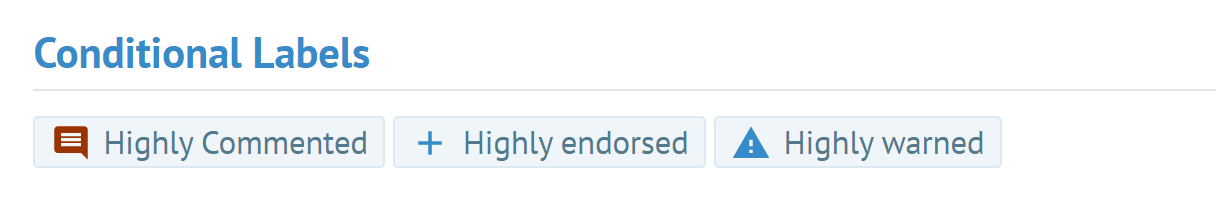 このラベルは[Manage Conditional Labels] (条件ラベルを管理)ページで管理および作成します。デフォルトでは、すでに複数の条件ラベルが定義されています。