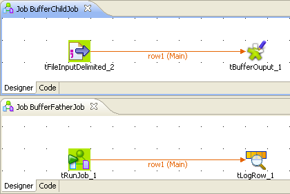Create two Jobs: a first Job (BufferFatherJob) runs the second Job and displays its content onto the Run console. The second Job (BufferChildJob) stores the defined data into a buffer memory.