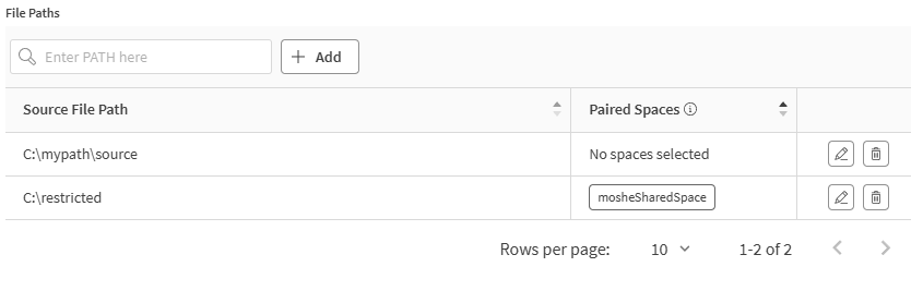 Bir alanı bir yolla eşleştirmek için, yolu ekledikten sonra, satırın sonundaki düğmesine tıklayın ve Eşleştirilmiş alanlar sütunundaki açılır listeden bir veya daha fazla alan seçin. Bir yol alanlarla eşleştirilirse, yalnızca alanlardan en az birine ait olan kullanıcılar belirtilen yola erişebilir. Unutmayın ki, belirtilen alanların üyeleri, ait oldukları herhangi bir alandan (açıkça tanımlanmamış olsa bile) kişisel alanları dahil olmak üzere yola erişebilecektir.